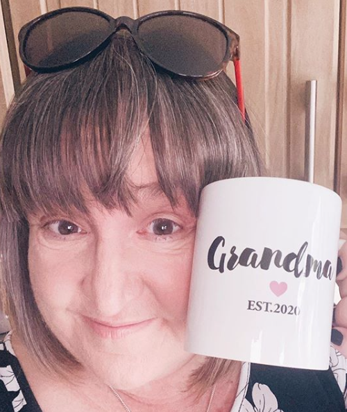 Yep, the news is out. I am going to be a granny. Mr B is going to be a grandpa. A couple of weeks ago Caity and Dan popped in one Sunday morning and presented us each with a present wrapped in tissue paper. It felt like a mug and they said we had to open them at the same time. We had no idea they would have “Grandma”
