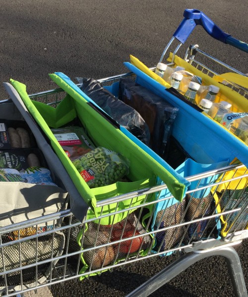 If you don’t know about Trolley Bags, you really should. They are one of those inventions that make me kick myself and wonder why I didn’t invent them. The idea is very simple. Four bags, that stick together with velcro, the perfect size to sit in a supermarket trolley. Available in two sizes to fit either a shallow trolley or a deeper one. You simply