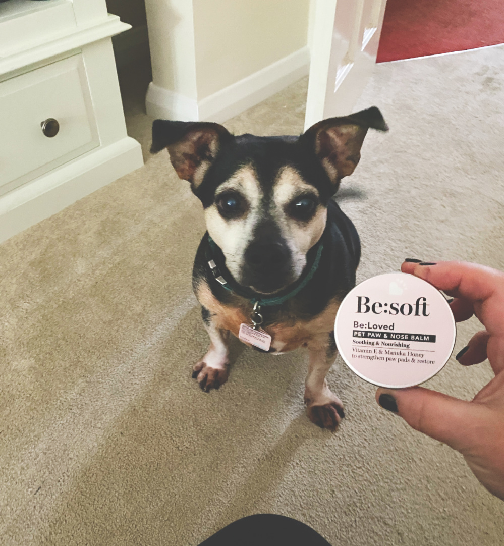 As it says on the tin this is soothing and nourishing and made with vitamin E and Manuka honey. It is perfect for rubbing on paws that are cracked or looking sore and is also perfect for rubbing on dry noses. Best warmed in your hands a little bit first then makes it really easy to rub into their paws or nose (and any leftovers can be rubbed into your own hands) or you can warm it and then try and persuade them to stand on the balm, Cheeky wasn’t having any of that though! Beware though once they get a whiff of it, your dog will try to eat it off your hands before you have a chance to warm it: