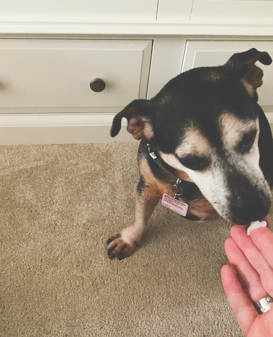 Mr Cheeks is not getting any younger (well, none of us are, are we?) and is of an age now where we have to take more care of him than we did when we first adopted him. He is over ten now and definitely slowing down (unless you’re the postman knocking on the door, then he will still do the dash down the hall at breakneck speed) and now on medication for a long term illness. Where his claws would keep themselves short because he was walking and chasing tennis balls for hours, now we have an appointment at the groomers to get them clipped every month or two. For a while now we have also suspected he might have an allergy akin to hay fever as there are days that he will constantly nibble his paws, and rub his nose on the front door mat, no amount of distracting him will make him stop. So when I was approached to review some dog products I jumped at the chance (as did he when the postman arrived).