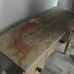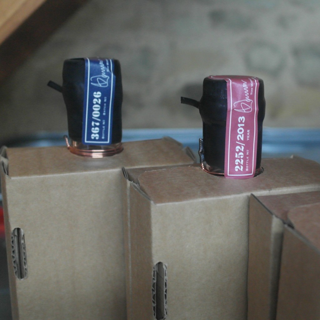 There were lots of lovely touches of history closer to home as we heard how the building itself had been an old barn and in fact Tom had celebrated his 12th birthday there. The table that was used for cutting the wire to go around the neck had been his granny’s. And simply has two marks on it, one saying “long” and one saying “short” to show where the wire should be cut. The bottles are dipped in wax kept warm in a slow cooker in the corner. They need to cut ribbon to a certain length and this measured using a magazine that had been in the office when they started a couple of years ago as its length is the perfect size.